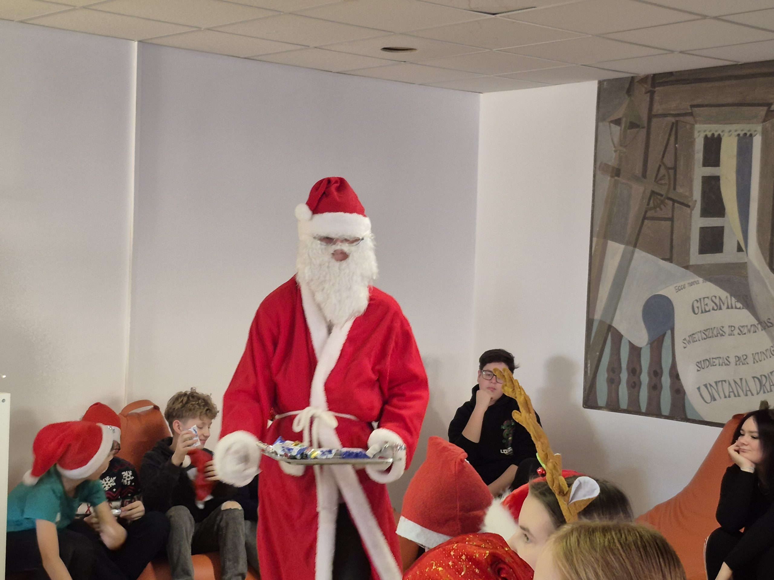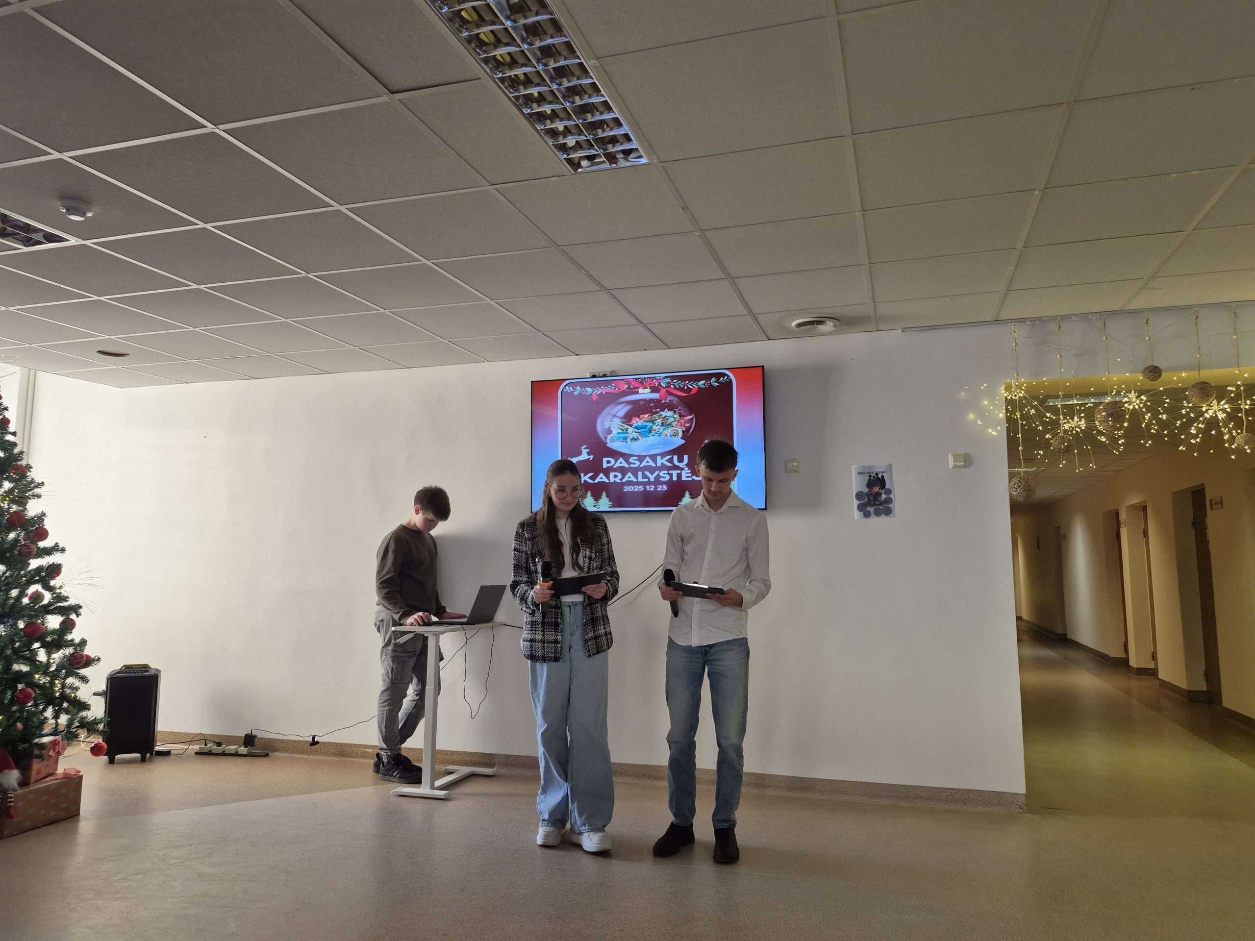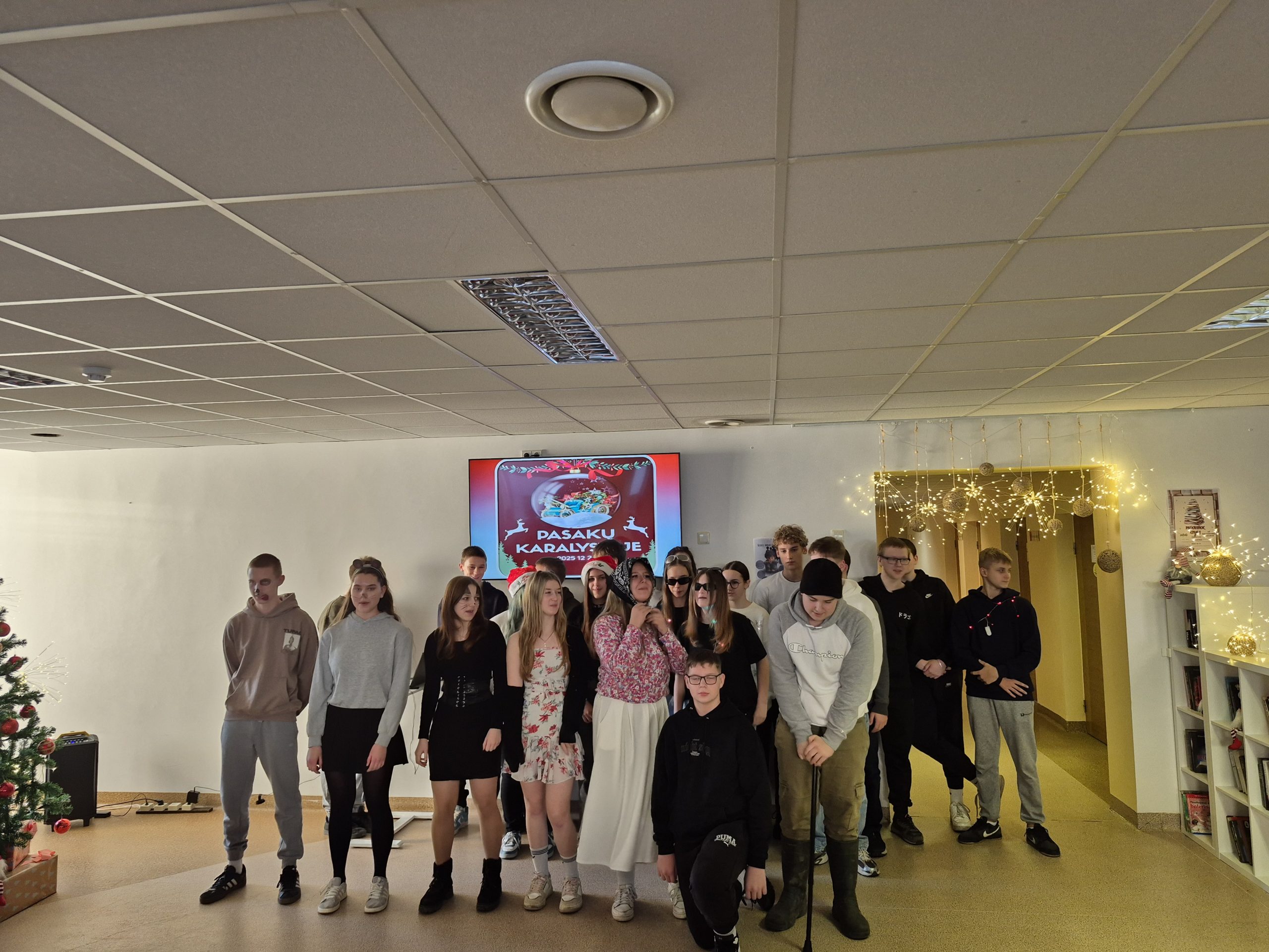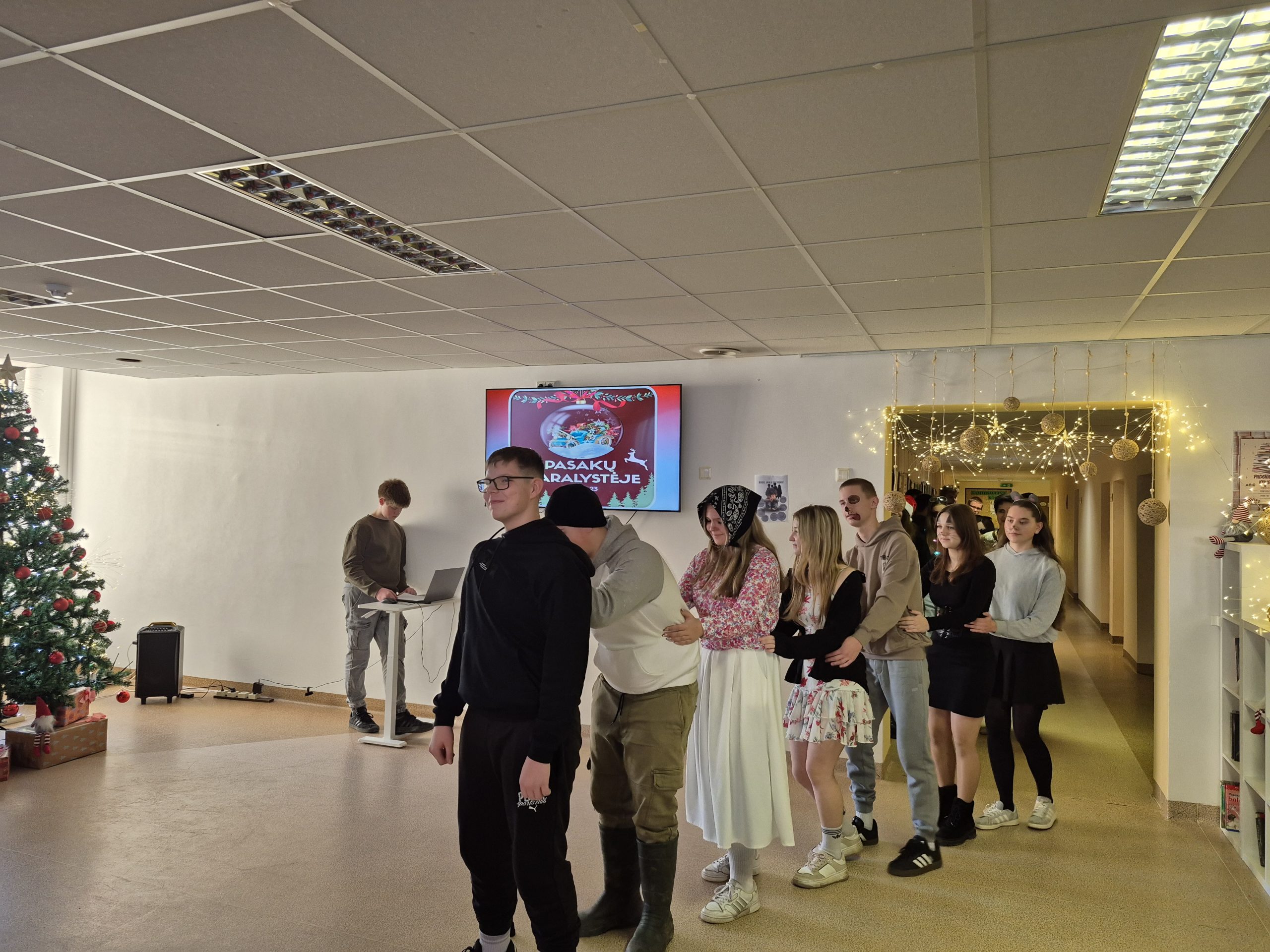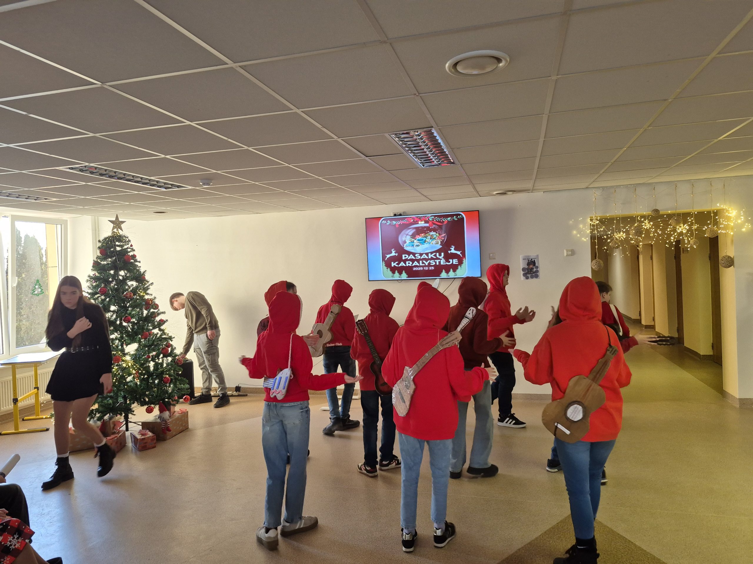 Gruodžio 23-sios rytmetį gimnazijos II a. fojė pasklido šventinis šurmulys. 5-IVg klasių mokiniai susirinko į karnavalą, kurio metu dovanojo vieni kitiems pasirodymus, kuriuos paruošė pagal pasirinktą pasaką. Vyko pasakų „Koko“, „Vilkas ir septyni ožiukai“, „Ropė“, „Naujametinė pasaka“, „Moana“, „Alvinas ir burundukai“, „Trys paršiukai“ inscenizacijos. Būta dainų ir šokių, video filmukų. Visoms klasėms įteiktos Padėkos, šventė baigėsi draugiškai atlikta naujamete daina.