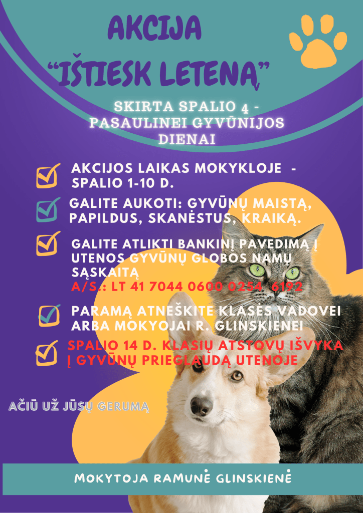 Rugsėjo 16-ą dieną penktokai dalyvavo Kamajų šile vykusioje netradicinėje pamokoje tema „Žmogaus ir aplinkos ryšys“. Mokiniai ne tik įtvirtino turimas žinias, bet ir atliko praktines užduotis. Dėkojame miškininkei Jolitai Šliakienei už bendradarbiavimą bei kūrybišką požiūrį atskleidžiant žmogaus ir gamtos ryšį. Gamtos mokytoja Jolanta Vygėlienė