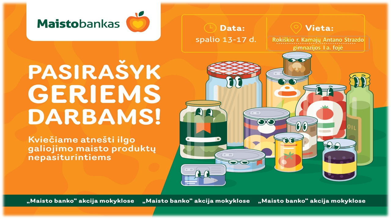 Pasirašome geriems darbams!Autorius Administratorius / 2025-10-14 Kviečiame dalyvauti respublikinėje „Maisto banko” akcijoje mokykloje.