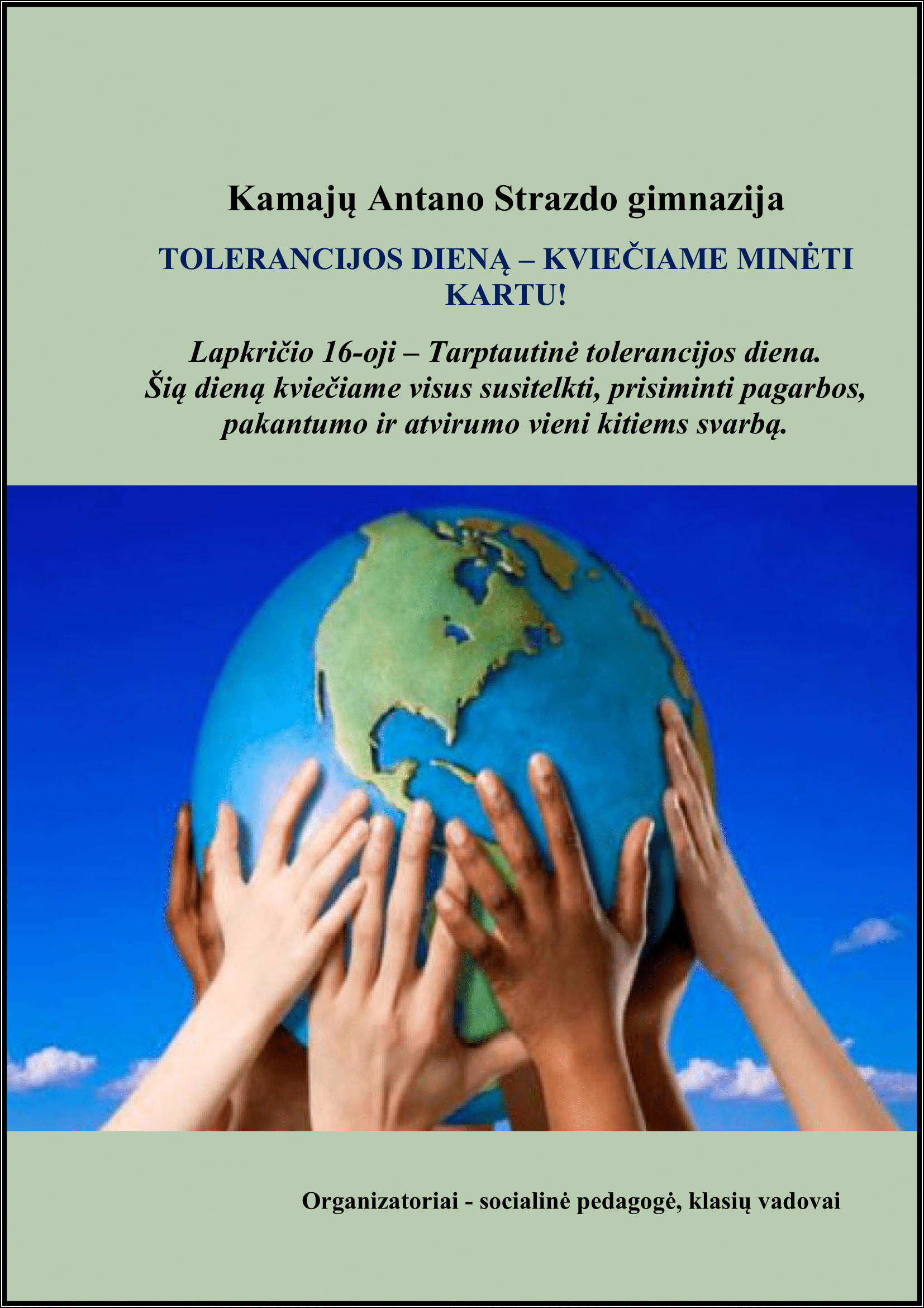 Lapkričio 14 dieną gimnazijoje vyko Tarptautinės tolerancijos dienos renginiai