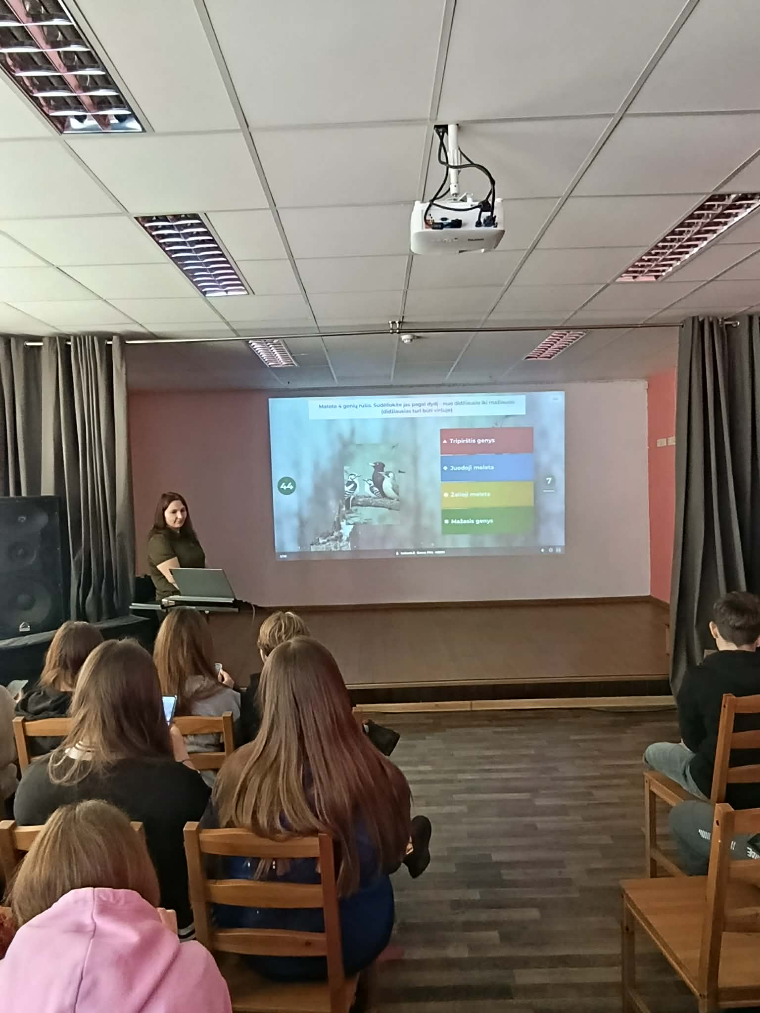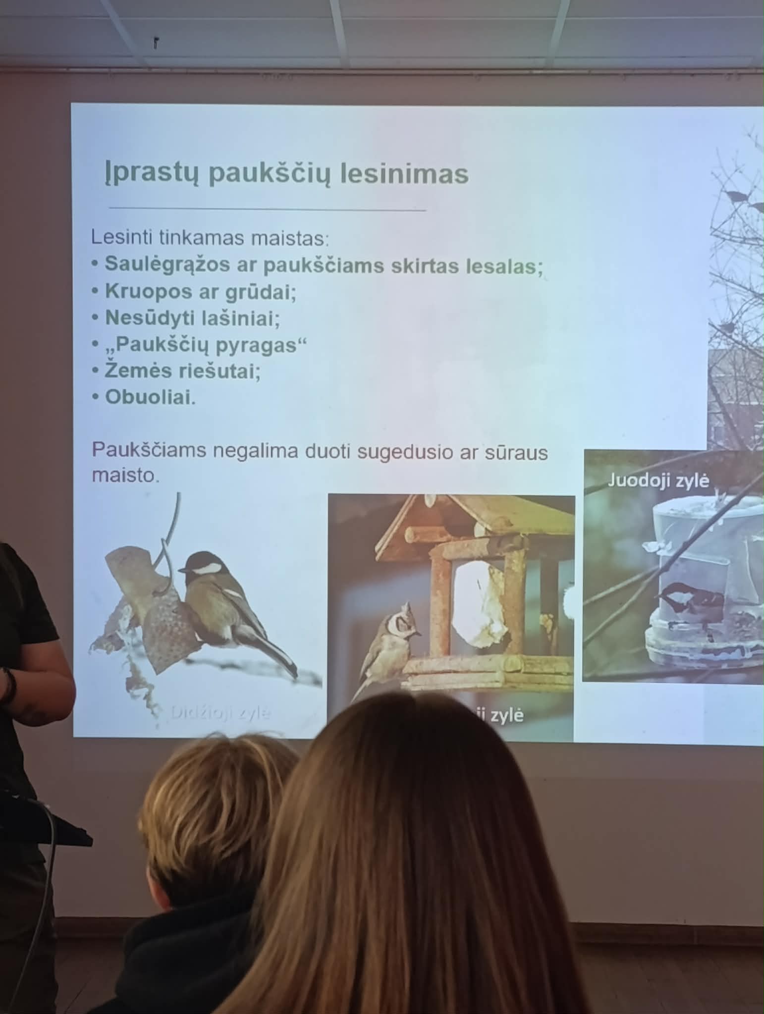 Septintokai pamokose įgytas žinias pagilino netradicinėje pamokoje „Lietuvoje žiemojantys paukščiai“. Pamoką vedė Valstybinės miškų urėdijos Rokiškio padalinio specialistė Jolita Šliakienė. Mokiniai daug sužinojo apie žiemojančius paukščius bei savo žinias pasitikrino atlikdami praktines užduotis.
