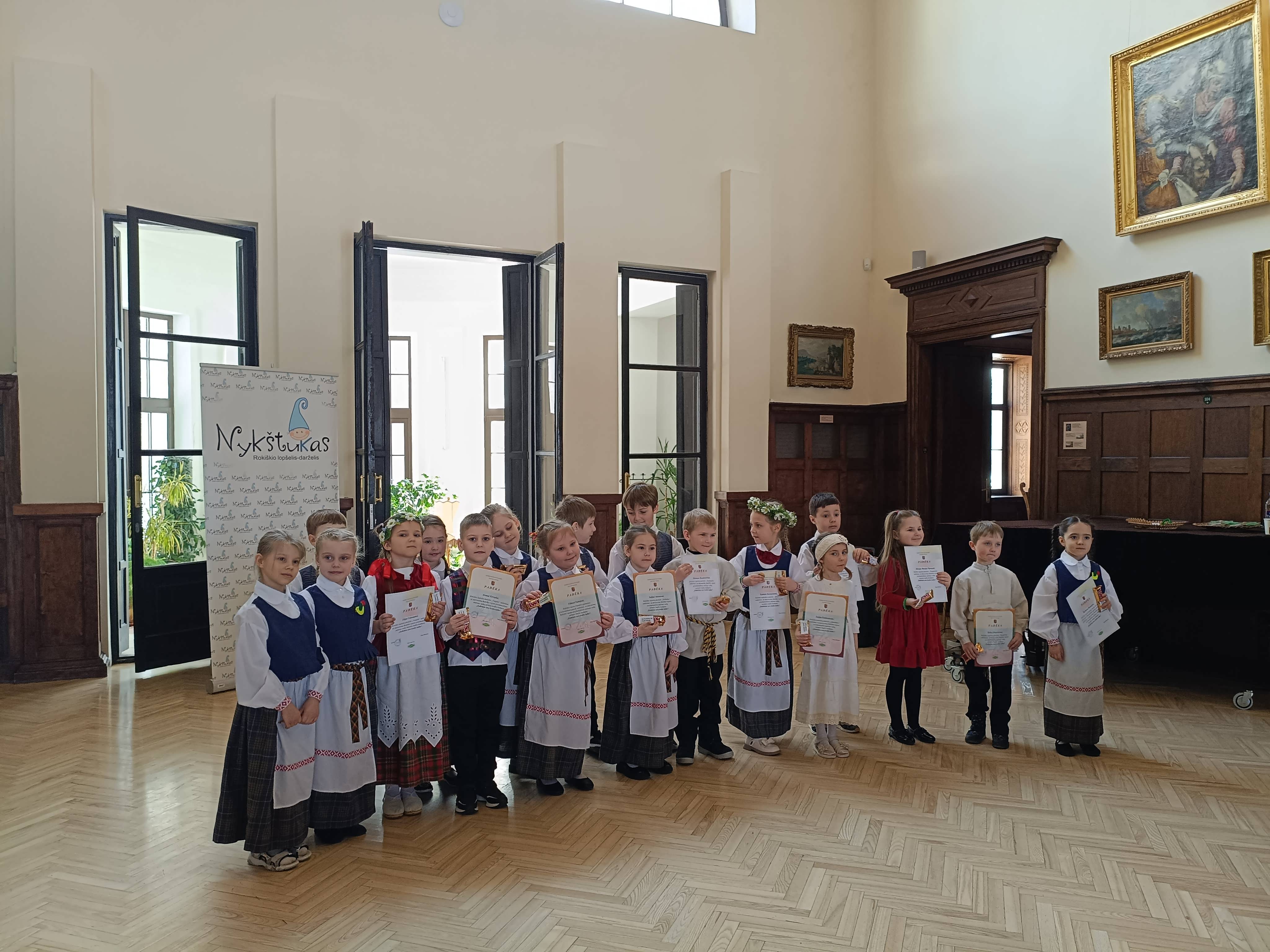 NYKŠTUKŲ grupės atstovės Vanesa ir Barbora skaitovų konkurse ,, Kalbėkim savo krašto kalba”.