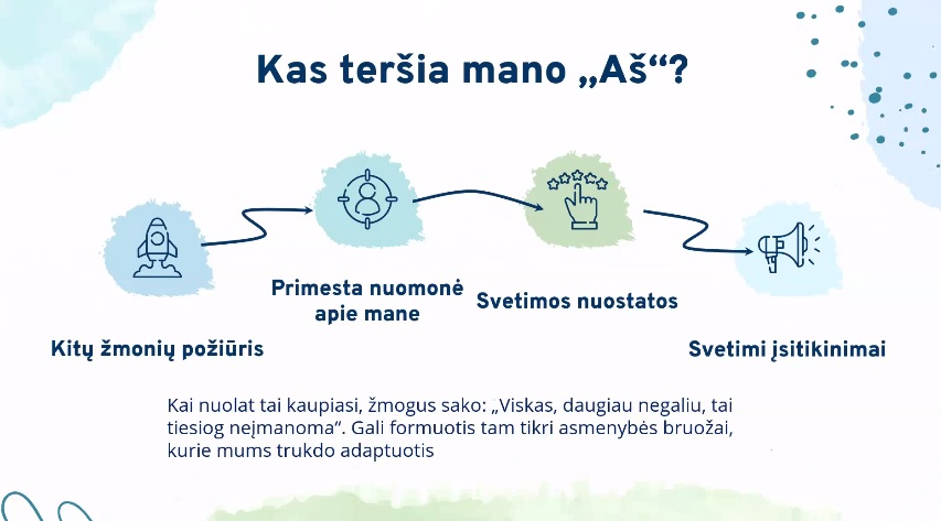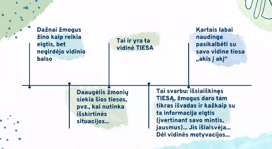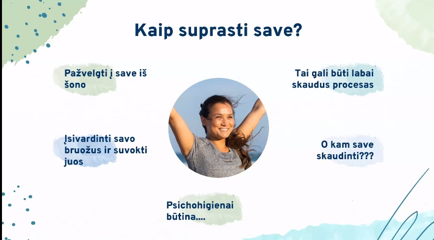 „Kaip mokytis, kad reikėtų mažiau mokytis?“, „Noriu išlikti savimi“, „Lyčių vaidmenys – priimti ar keisti?“, „Ar mes pasirengę valdyti savo karjerą“, „Į pasimatymą su savimi“.